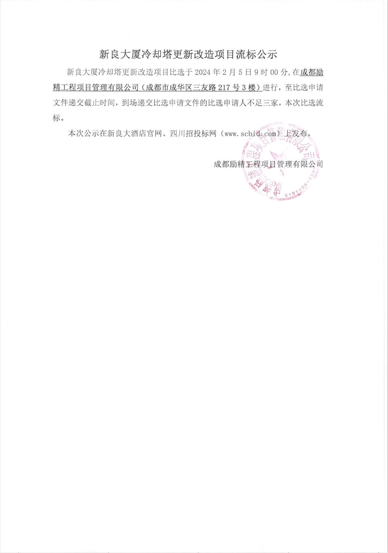 新良大厦冷却塔更新改造项目流标公示