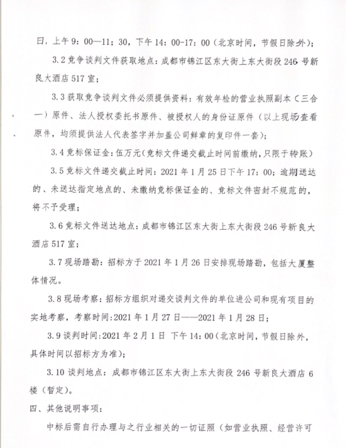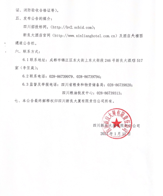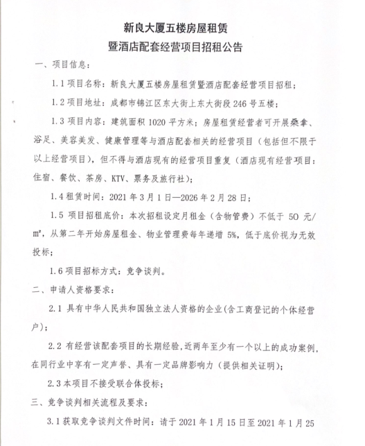 新良大厦五楼房屋租赁暨酒店配套经营项目招租公告