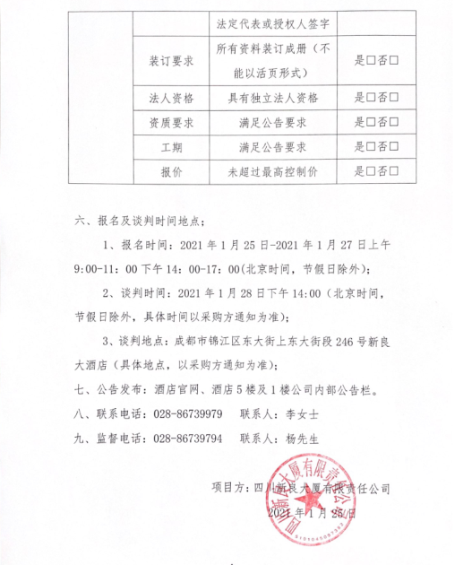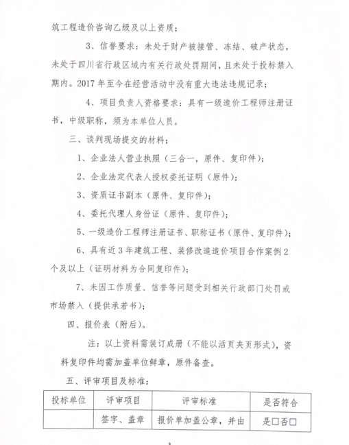 四川新良大厦有限责任公司二楼部分区域改造项目造价咨询简易竞争谈判公告