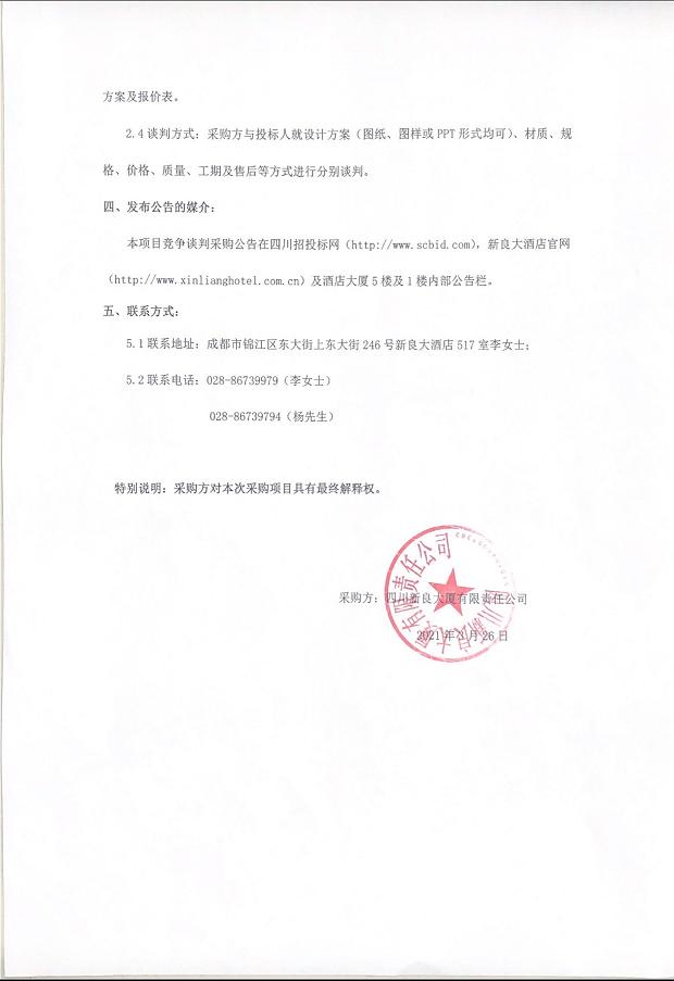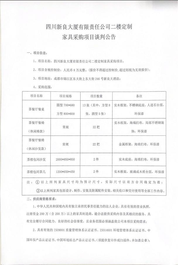 四川新良大厦有限责任公司二楼定制家具采购项目谈判公告