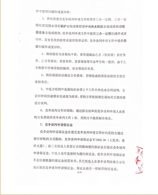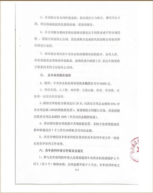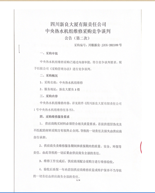 四川新良大厦有限责任公司中央热水机组维修采购竞争谈判公告(第二次)