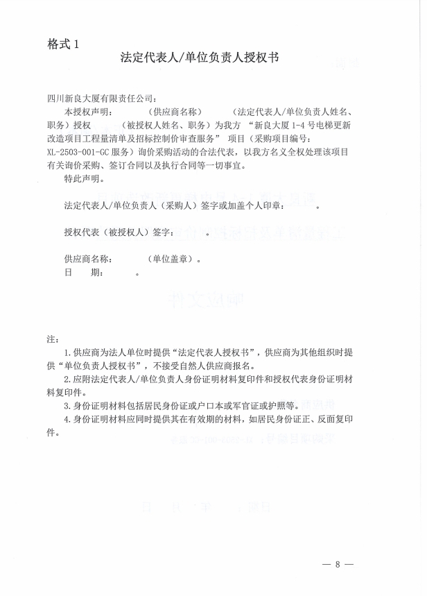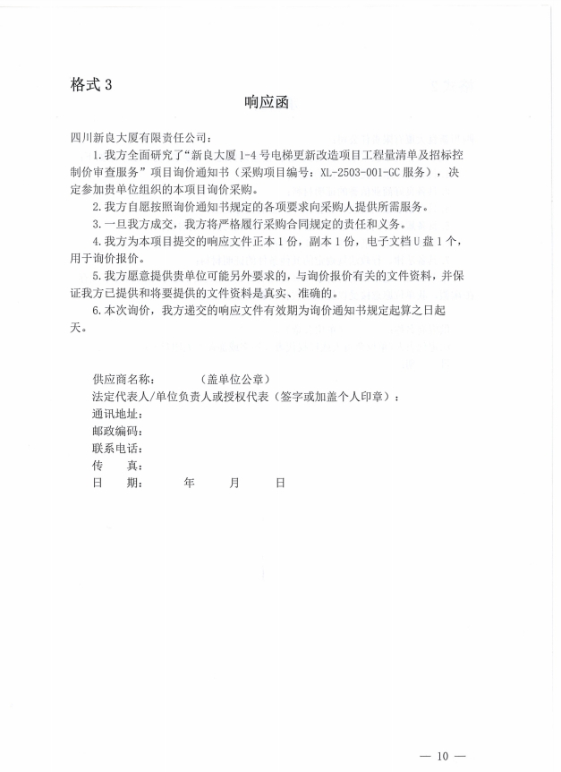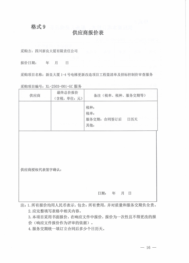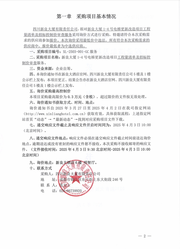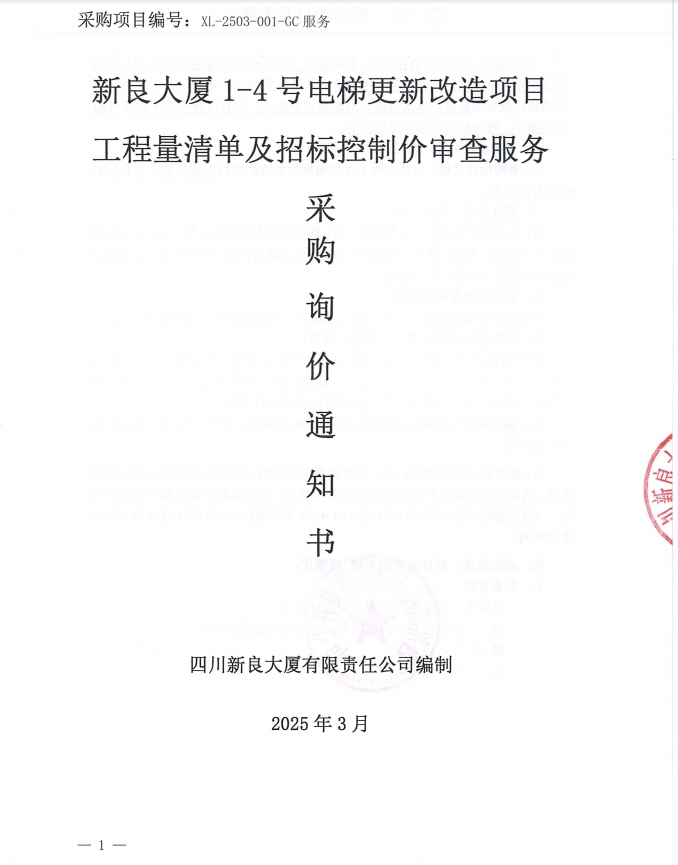 【询价通知书 XL-2503-001-GC服务】新良大厦1-4号电梯更新改造项目工程量清单及招标控制价审查服务采购询价通知书.docx