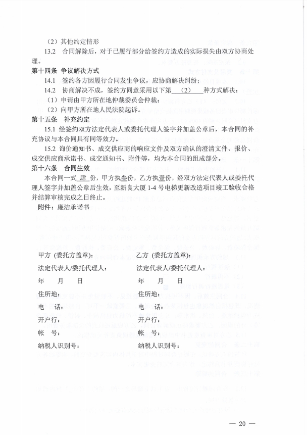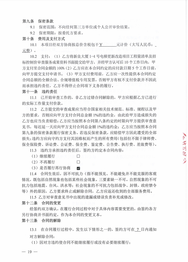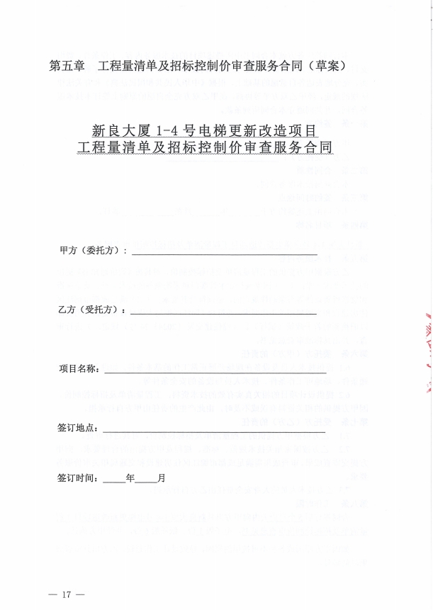 新良大厦1-4号电梯更新改造项目工程量清单及招标控制价审查服务通知书