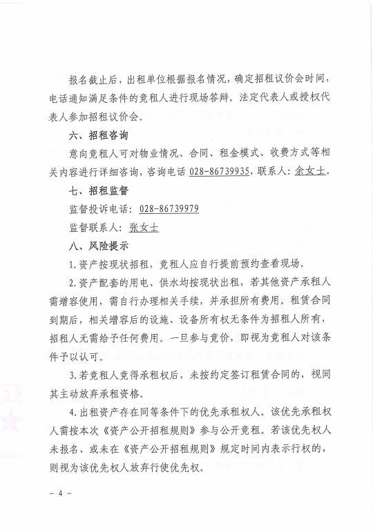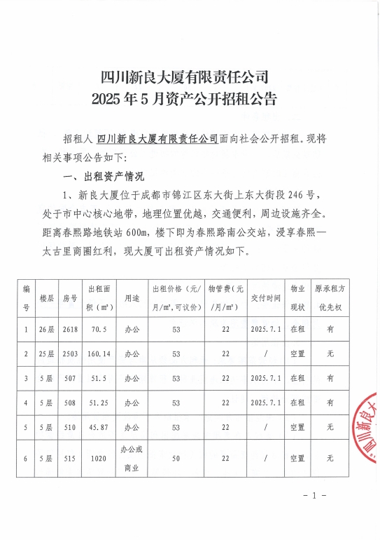 四川新良大厦有限责任公司2025年5月资产公开招租公告