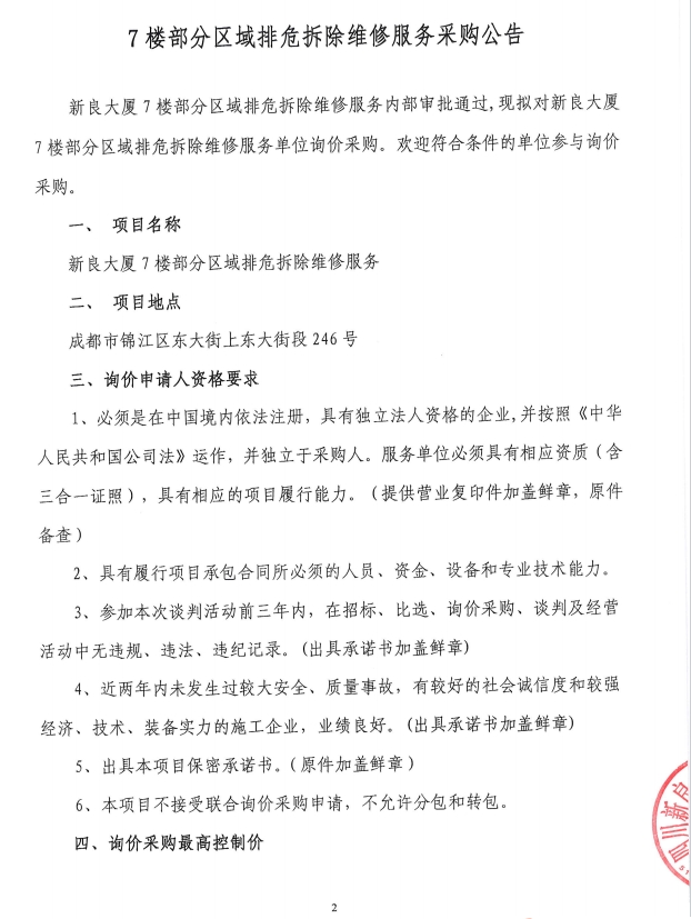 四川新良大厦有限责任公司新良大厦7楼部分区域排危拆除维修服务.pdf