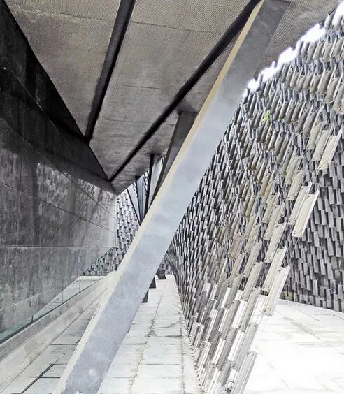 隈研吾把握道教、艺术、文化的主脉,通过水来衔接天与地,让建筑与自然有机地结合在一起。整座“知•美术馆”含蓄、内敛,富有禅意,将水的意境和中国传统建筑元素“瓦”相连接。